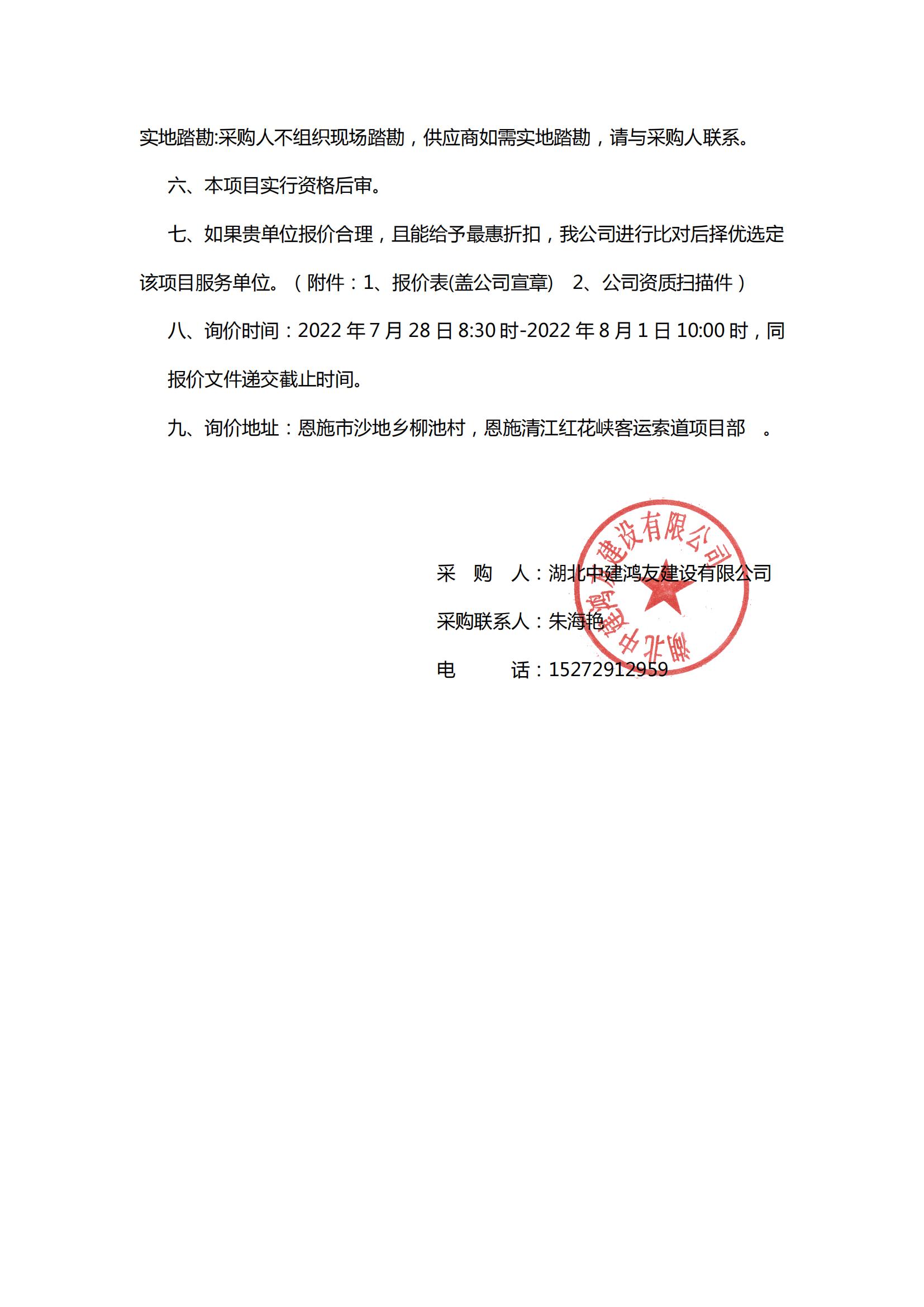 - 恩施清江紅花峽客運索道下站房電梯采購及安裝工程詢價函 2022-07-28